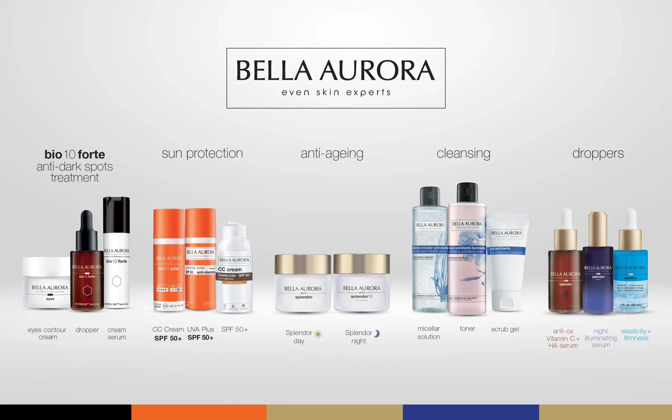Bella Aurora’s portfolio is comprehensive, featuring products for treating and preventing dark spots, anti-aging, sun protection, and cleansing routines.