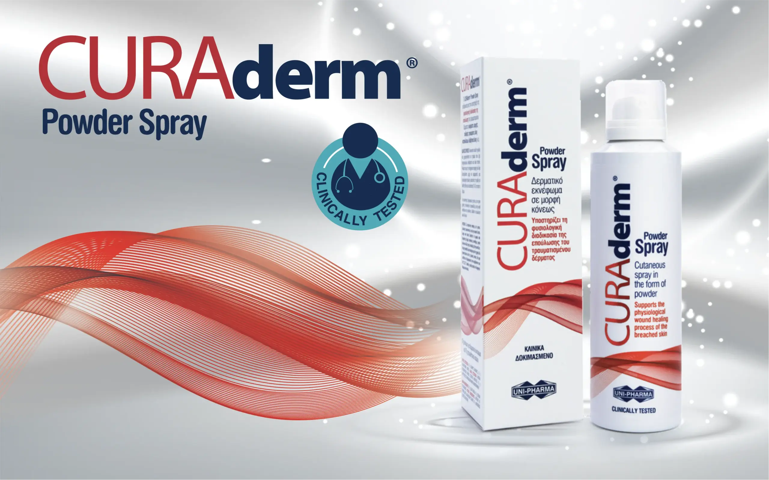 CURAderm Powder Spray is intended for topical application to support the physiological wound healing process of the breached skin such as cuts, abrasions, burns (up to 2nd degree) and ulcers (pressure ulcers, diabetic ulcers).