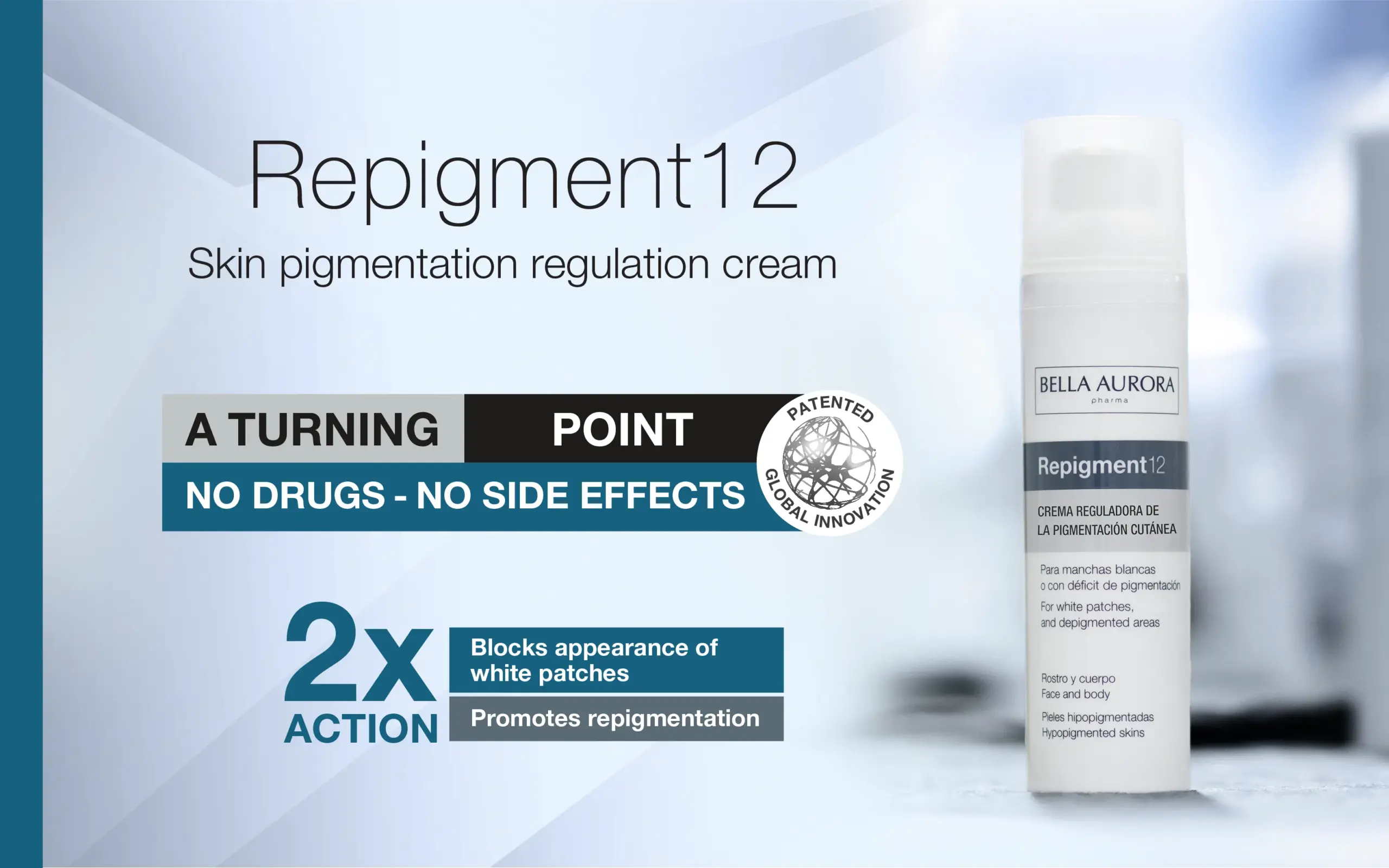 Repigment12 is a patented cream designed for white patches and depigmented skin areas, helping to restore skin color. Its formula is based on the discoveries of Italian researcher Matteo Bordignon, MD, PhD, regarding chronic melanocyte detachment.