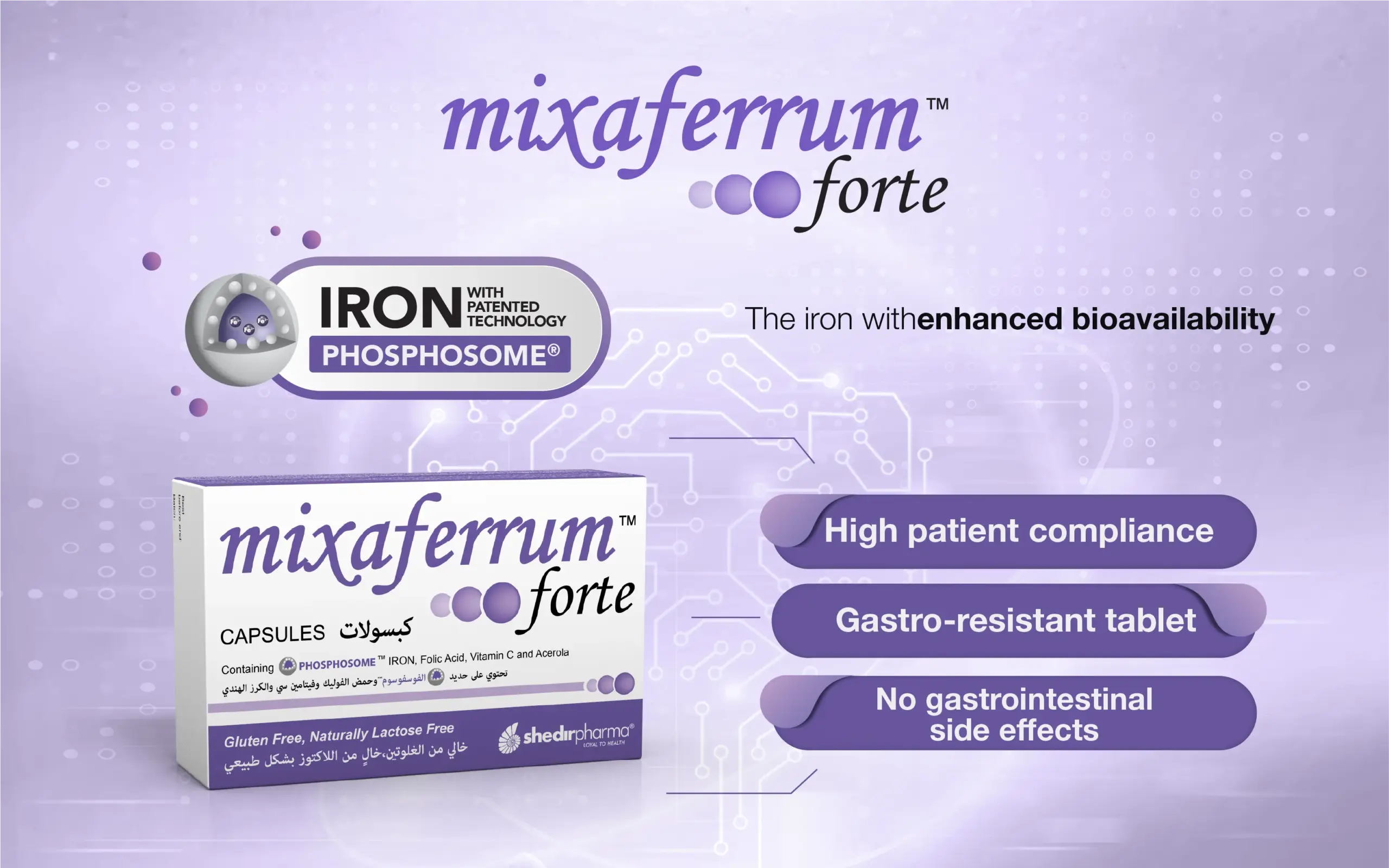 Mixaferrum’s innovative granular formulation features bi-layer technology that includes modified starch, phosphatidylcholine (PC), and phosphatidylserine (PS), demonstrating greater gastroresistance compared to other supplements. These benefits are supported by an in vitro study evaluating gastroresistance and intestinal absorption.